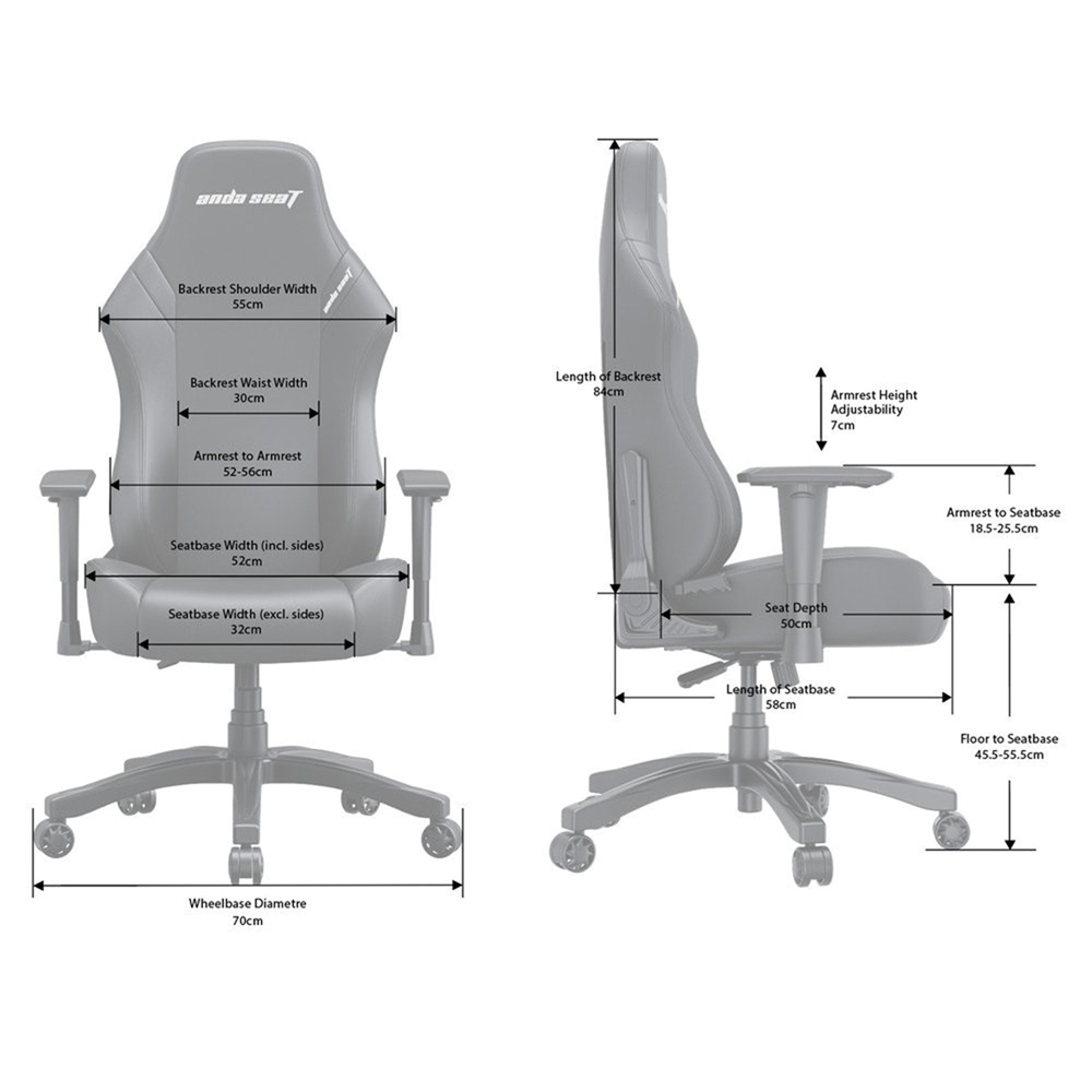 AndaSeat غطاء الكرسي من جلد PVC مسند ظهر قابل للتعديل من 90° إلى 160° ارتفاع الظهر: 84 سم | عرض الكتف: 55 سم