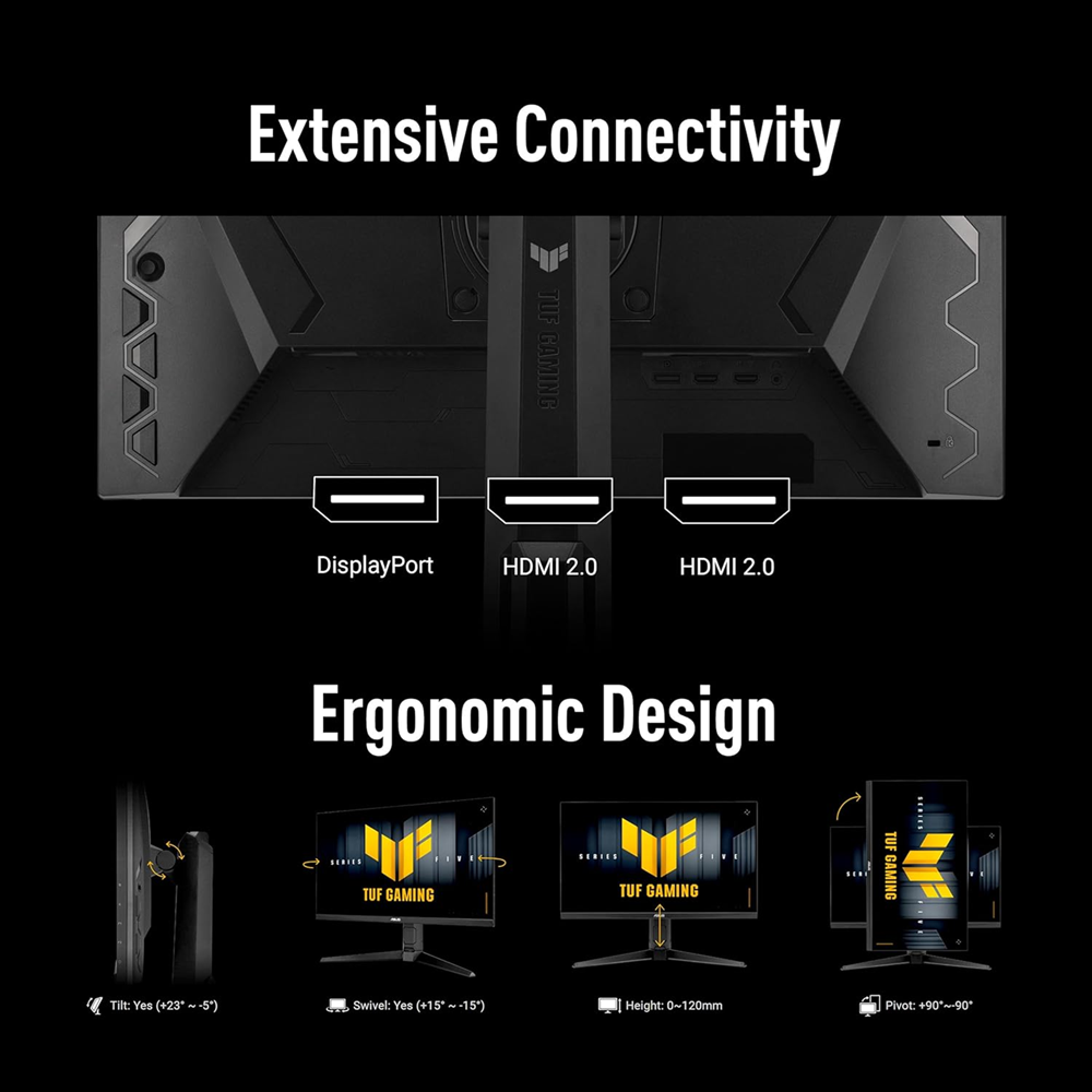 تدعم تقنيات NVIDIA G-SYNC و AMD FreeSync Premium لمرئيات ناعمة دون تمزق، بينما تعمل تقنية ASUS ELMB Sync على إزالة الظلال خلال اللعب بمعدلات إطارات عالية.