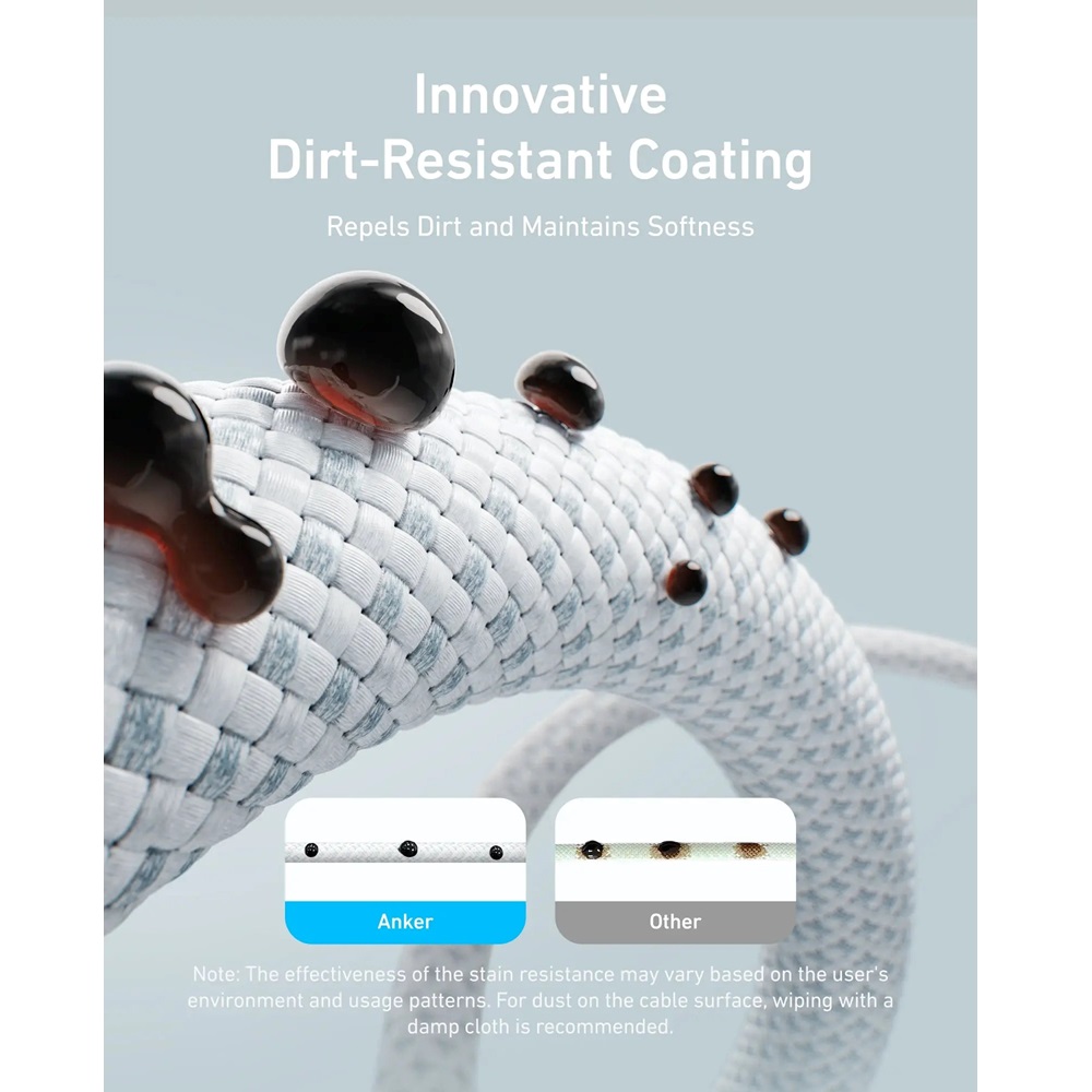 Dirt-Resistant Unibody Cable: Offers a stylish, unibody design with a dirt-resistant coating that prevents buildup and maintains the cable’s clean appearance.