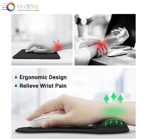 دعامة معصم مريحة (Ergonomic) تم تصميم دعامة المعصم المريحة بخبرة لتعزيز الراحة وتقليل الإجهاد أثناء فترات استخدام الكمبيوتر الطويلة. يضمن شكلها الهندسي بقاء معصمك في وضع محايد ومتوازن، مما يساعد على منع الانزعاج وإصابات الإجهاد المتكررة المحتملة. صُنعت هذه الدعامة من مواد مبطنة عالية الجودة، وهي تتشكل حسب الانحناء الطبيعي لمعصمك، مما يوفر دعماً مثالياً ويخفف الضغط. سواء في المكتب أو المنزل، فهي توفر حلاً عملياً لتحسين وضعية الكتابة وصحة المعصم بشكل عام.