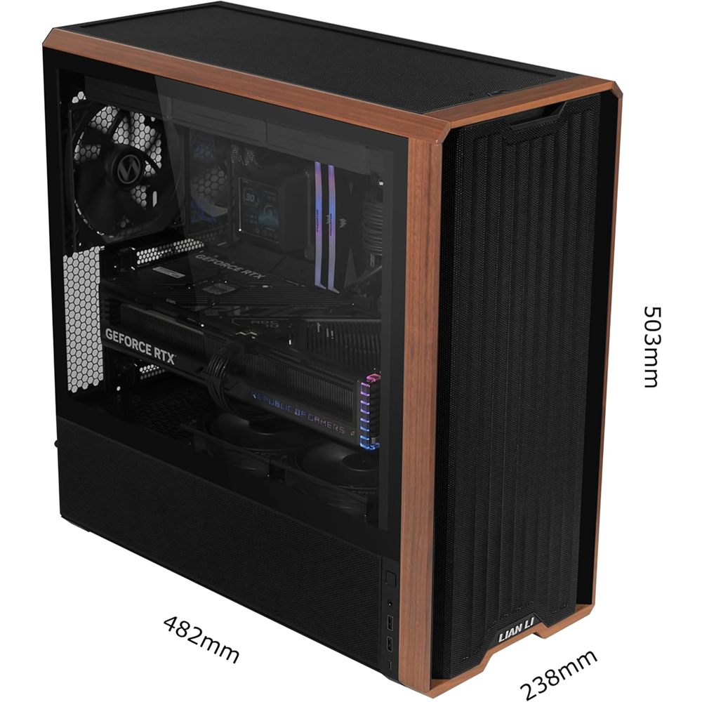 LIAN LI LANCool 217 Black Tempered Glass Wood Panel Mid Tower PC Gaming Case, 5-Fans