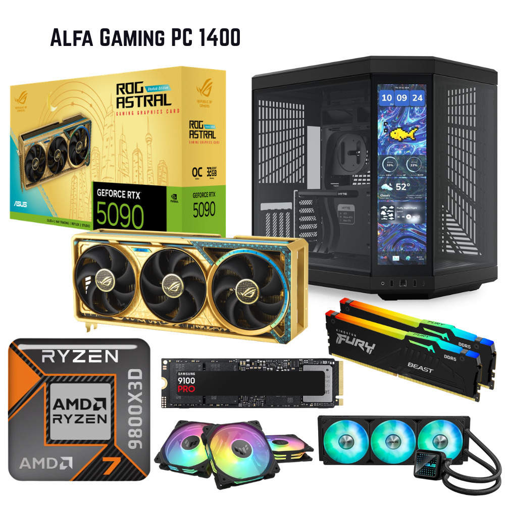 Alfa Gaming PC 1400, AMD Ryzen 7 9800X3D, 32GB RTX5090 ROG Astral Dhahab, 64GB RAM, 1TB NVME, HYTE Y70 Touch, W11Pro
