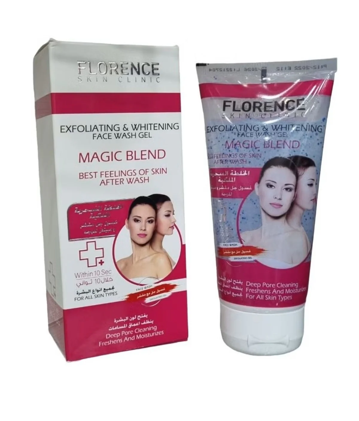 Florence Exfoliating and Whitening Facial Gel Wash with the Royal Magic Mixture 150ml Lightens skin tone Cleanses deep within pores How to use: Put a small amount of the wash on your wet hands, wash your face and massage in circular motions, then rinse with warm water. Use in the morning and evening.