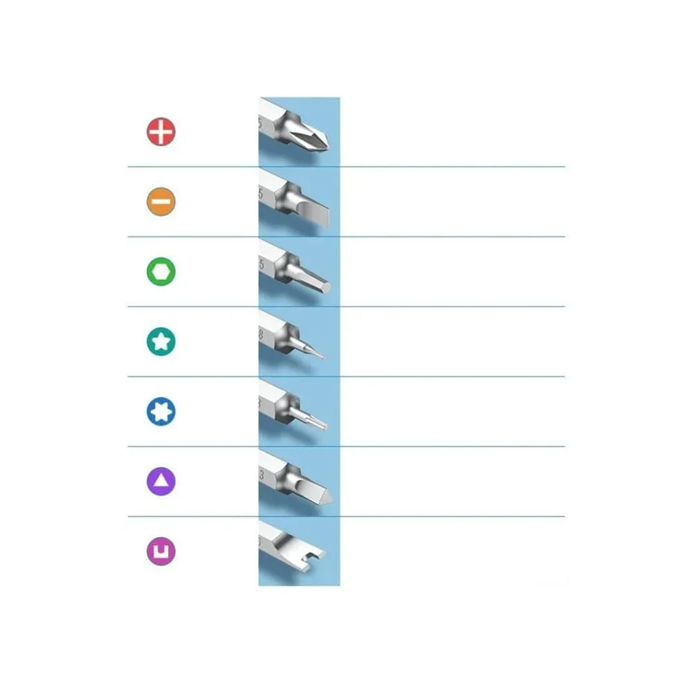- Magnetic Bit Holder – Securely holds screws and bits, preventing drops and loss during delicate repairs.